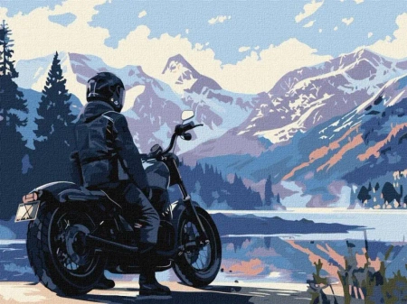 Malowanie po numerach -Motocyklista w górach 30x40 - Ideyka