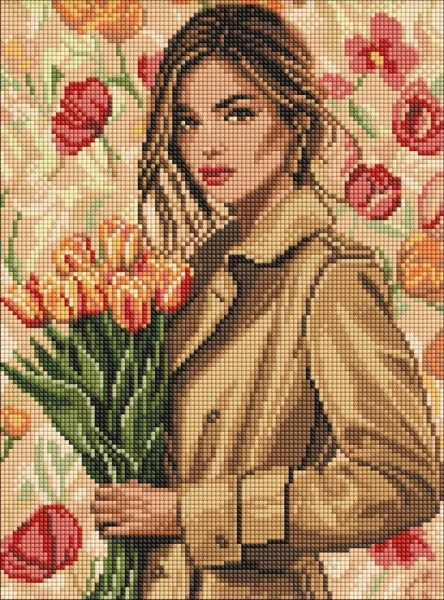 Diamentowa mozaika - Dziewczyna w płaszczu 30x40cm - Ideyka