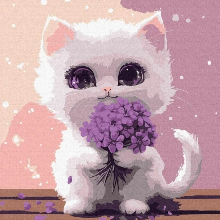 Malowanie po numerach -Kot z bukietem Kids 30x30 - Ideyka