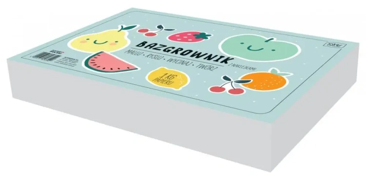 Bazgrownik to aż 1 kg papieru wraz z naklejkami, cały do zamalowania, zapisania i wycinania w ramach twórczej zabawy małego artysty.