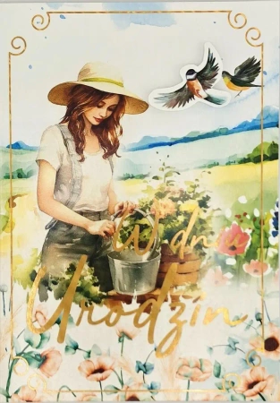 Karnet 3K to bogato zdobiony karnet z elementem naklejanym oraz złoceniem. Karnet to doskonały dodatek do prezentu. Karnet zawiera również zabawne życzenia.