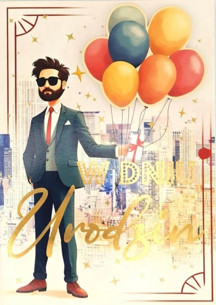 Karnet 3K to bogato zdobiony karnet z elementem naklejanym oraz złoceniem. Karnet to doskonały dodatek do prezentu. Karnet zawiera również zabawne życzenia.