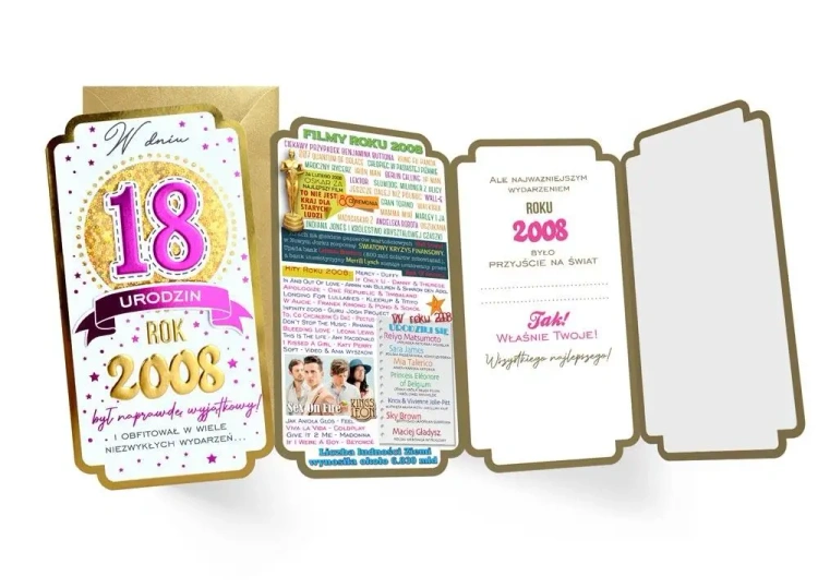 zdobienie: przynajmniej dwie folie (metaliczne/perłowe/holograficzne), elementy doklejane, wycięcia laserowe, wstążeczki - w zależności od wzoru,
