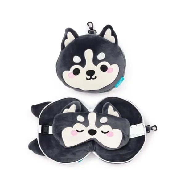 Poduszka podróżna i maska na oczy - Pies Husky Luna - Relaxeazzz