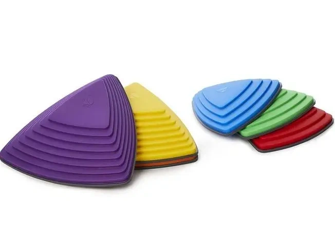 Różnorodne kolorystycznie i wielkościowo stopnie z tworzywa sztucznego, imitujące prawdziwe kamienie. Zadaniem uczestnika zabawy jest przeskakiwanie z kamienia na kamień z zachowaniem równowagi. Gra ćwiczy koordynację ruchową, równowagę oraz gibkość. Elementy od spodu zabezpieczone gumowymi podkładkami uniemożliwiającymi przesuwanie się podczas zabawy.