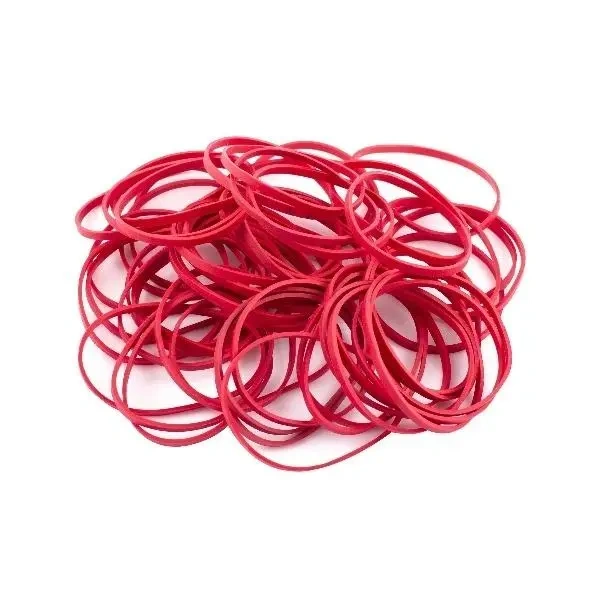 Elastyczne gumki recepturki w kolorze czerwonym. Wykonane z naturalnego kauczuku, który sprawia, że są mocne i wytrzymałe. Służą do tymczasowego łączenia luźnych przedmiotów. Wykorzystywane są np. do łaczenia kwiatów i warzyw, do spinania kabli, zamykania pudełek i korespondencji i do organizacji dokumentów. Pakowane w woreczki 1 kg. Przekrój: 1,5 x 3 mm, Połowa obwodu: 80 mm, Średnica: 50 mm, Kolor: czerwone