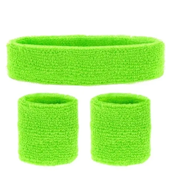 Zestaw opasek frotowych na ręcę i głowę - Zielony - Widmann
