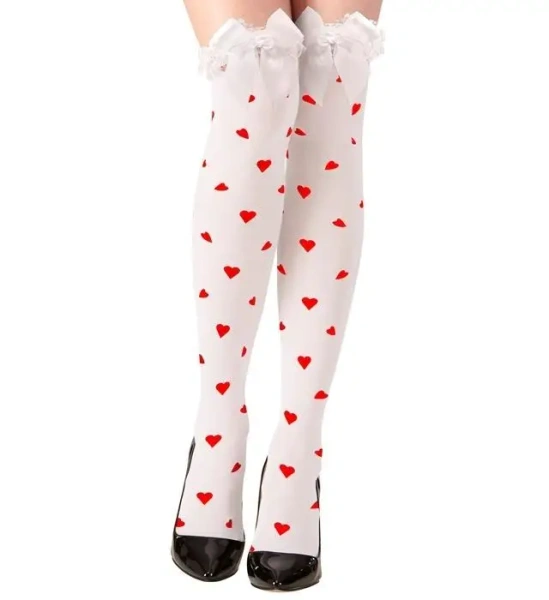Samonośne pończochy kobiece białe w czerwone serca - Widmann