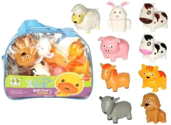 Zmien kazda kapiel w radosna przygode pelna usmiechu dzieki zestawowi gumowych zwierzatek. W sklad kompletu wchodzi dziewiec roznorodnych figurek takich jak piesek kotek krowka czy swinka ktore zachwycaja swoimi barwami i przyjaznym wygladem. Zabawki stymuluja rozwoj sensoryczny oraz koordynacje wzrokowo ruchowa malucha podczas pluskania sie w wannie. Calosc znajduje sie w praktycznym plecaku zapinanym na zamek wykonanym z folii i siatki co sprzyja szybkiemu wysychaniu elementow. To doskonaly sposob na oswojenie dziecka z woda i zapewnienie mu bezpiecznej rozrywki kazdego dnia.