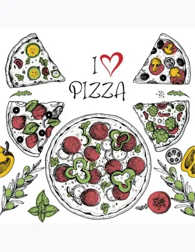 Wakacyjne serwetki papierowe Daisy z graficznym motywem pizzy. Białe serwetki z nadrukiem „I LOVE PIZZA”. Doskonałe serwetki na letnie przyjęcia i rodzinne obiady. Serwetki ozdobne w stylu włoskim dla wszystkich miłośników pizzy. Serwetki papierowe do pizzerii i restauracji w stylu włoskim. Europejski producent serwetek papierowych Pol-Mak oferuje wysoką jakość swoich produktów. Serwetki lunch pakowanie: 20 szt.