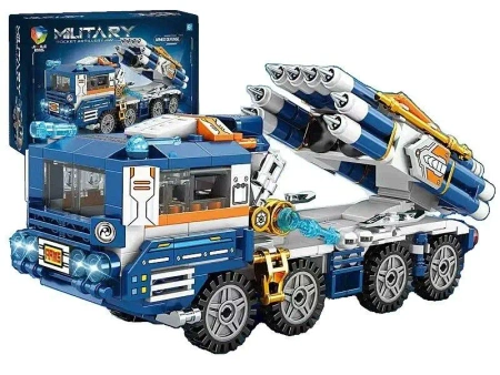 Zestaw klocków 409 części, pojazd wojskowy z wyrzutnią rakiet; 36x25x8cm