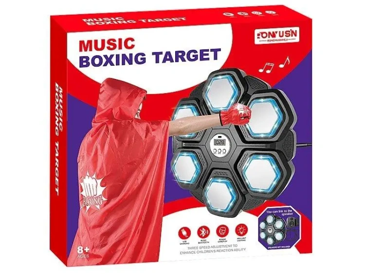 zestaw bokserski, tablica elektroniczna z 6 polami do boksowania, Bluetooth, 2 rękawice, światło, dźwięk, kabel USB; 36x34x8cm