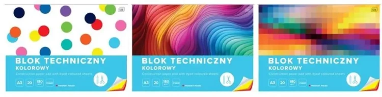 Blok techniczny kolorowy, barwiony w masie, format A3, 20 kartek. Producent Interdruk