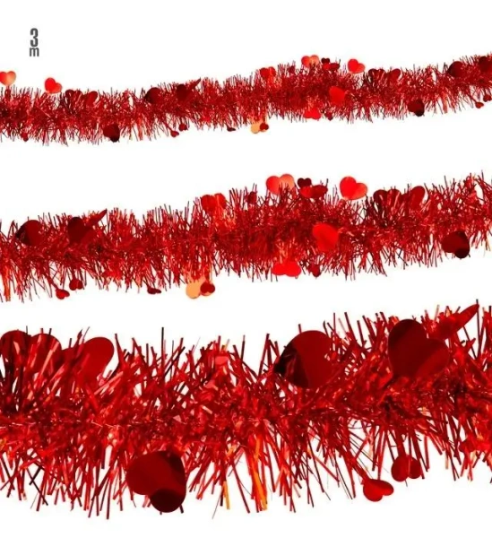 Ta girlanda z drobnymi czerwonymi sercami wyróżnia się delikatnością i eleganckim wyglądem. Długość 3 metrów pozwala na łatwe dopasowanie jej do różnych przestrzeni, tworząc spójną i estetyczną ozdobę. Niewielkie serduszka rozmieszczone w regularnych odstępach nadają całości lekkości, a intensywna czerwień dodaje charakteru i przyjemnego wizualnego akcentu.