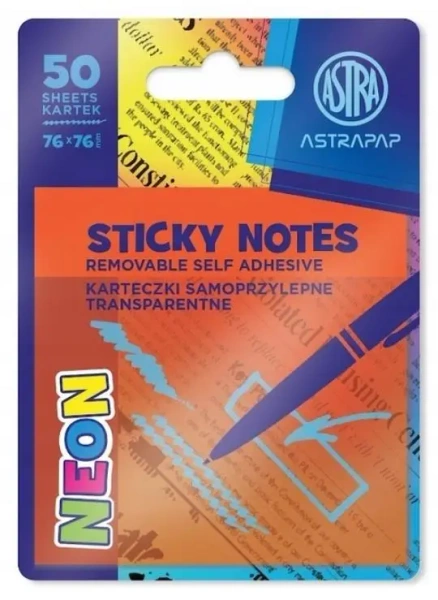 Karteczki samoprzylepne transparentne ASTRAPAP NEON LINE 75x75mm, 50k
