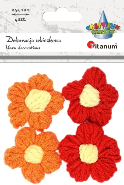 Dekoracje włóczkowe kwiatki 45mm 4szt - Titanum