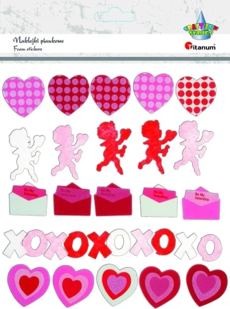 Naklejki piankowe serca, listy i filcowe amorki, xoxo 30szt.