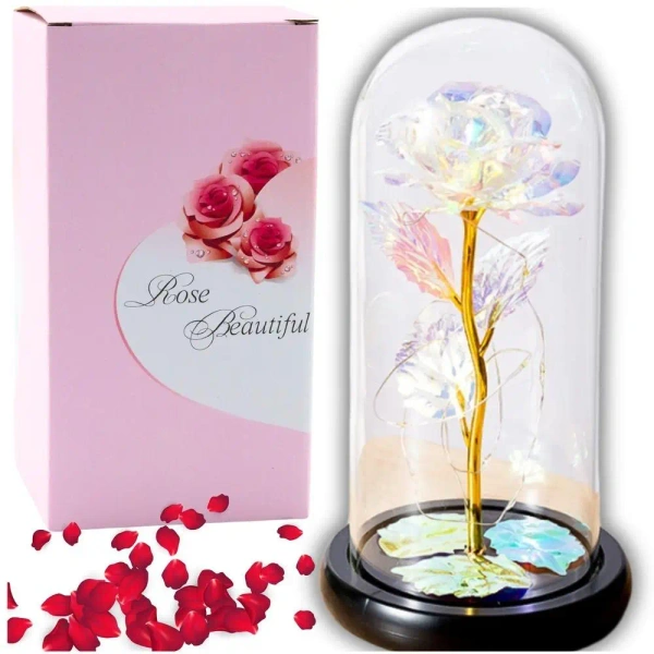 Wieczna Róża W Kopule Kryształowa Kolorowa LED - Leantoys