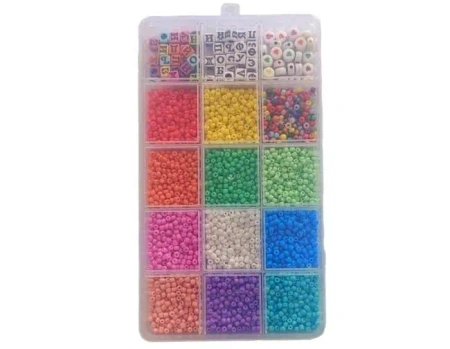 Odkryj magię rękodzieła i stwórz własną, niepowtarzalną kolekcję biżuterii z naszym bogatym zestawem koralików. Ten starannie skomponowany organizer to prawdziwa skarbnica inspiracji dla dzieci uwielbiających prace manualne i artystyczne wyzwania. Wewnątrz znajduje się szeroka paleta soczystych kolorów - od słonecznych żółci, przez głębokie błękity, aż po intensywne róże i fiolety. Każdy odcień został dobrany tak, aby gotowe ozdoby zachwycały estetyką i pasowały do każdej stylizacji małej artystki lub artysty.