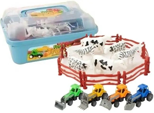 Zabawa w farmę to klasyka dzieciństwa, która teraz zyskuje zupełnie nowy, mobilny wymiar. Zestaw Farm Truck to bogato wyposażony komplet, który zachwyci każdego małego pasjonata wsi i wielkich maszyn. Sercem zestawu są cztery kolorowe traktory, z których każdy posiada inny osprzęt, co pozwala dziecku na wykonywanie rozmaitych prac gospodarskich - od wyrównywania terenu po przewożenie zapasów. Do dyspozycji małego farmera oddano także stado uroczych zwierząt w charakterystyczne wzory, które mogą odpoczywać wewnątrz dołączonej, modułowej zagrody.