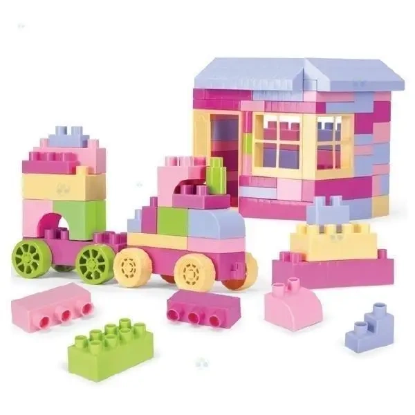 Komplet klocków w różanym pojemniku dla dziewczynek - 132 elementy