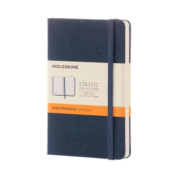 Zapraszamy do zapoznania się z opisem notatnika marki Moleskine o wymiarach 9x14 cm, który nosi kolor ciemnego szafiru.To jeden z najbardziej popularnych modeli oferowanych przez firmę. Dodatkową funkcjonalnością jest praktyczna kieszonkę przeznaczoną na przechowywanie różnorodnych drobiazgów, takich jak wizytówki czy luźne kartki. Notatnik posiada sprytny system zamykania za pomocą gumki, a także poręczną, materiałową zakładkę, którą łatwo zauważyć dzięki kolorowi dopasowanemu do okładki.