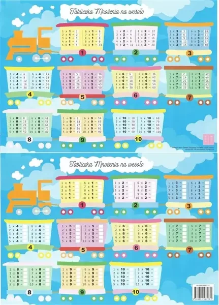 Oto niezwykle praktyczna i edukacyjna podkładka na biurko, która łączy w sobie funkcje podkładki oraz dwustronnej, laminowanej planszy z tabliczką mnożenia. Idealna dla uczących się dzieci, które chcą opanować mnożenie w sposób zabawny i efektywny. Inspirujący wzór z pociągiem dodaje energii i kreatywności do nauki. Podwójna funkcja podkładki sprawia, że jest zarówno przydatna w czasie nauki, jak i pracy. Na jednej stronie znajduje się gotowa tabliczka mnożenia z wynikami, natomiast na drugiej przedstawione są działania mnożenia 1-10 z pustymi miejscami na wpisanie odpowiedzi. Dzięki temu można doskonale ćwiczyć swoje umiejętności mnożenia. Wykorzystując pisak suchościeralny, uczący się może w prosty sposób wpisywać wyniki mnożenia i bez trudu je wymazywać. Podkładka jest foliowana dwustronnie, co zapewnia jej dłuższą żywotność oraz utrzymanie estetycznego wyglądu. Ponadto, obecność tabliczki mnożenia na podkładce motywuje do codziennego ćwiczenia umiejętności matematycznych i wykorzystywania każdej wolnej chwili na doskonalenie swojej wiedzy. Wybierz tę funkcjonalną i praktyczną podkładkę edukacyjną na biurko, która sprawdzi się zarówno w domu, jak i w szkole, pomagając uczącym się dzieciom opanować tabliczkę mnożenia w sposób zabawny, angażujący i skuteczny.EAN: 9788394567231