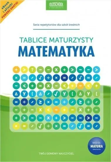 Potrzebujesz korepetycji z matematyki? Powtórki przed maturą? Szybkiej pomocy przed klasówką? Matematyka. Tablice maturzysty to idealna powtórka z matematyki dla maturzystów w formie wygodnych i przejrzystych tablic. Seria "OLDSCHOOL - stara dobra szkoła" została przygotowana przez doświadczonych korepetytorów i metodyków, a wszystkie publikacje są konsultowane z nauczycielami i poddawane testom przez samych maturzystów.