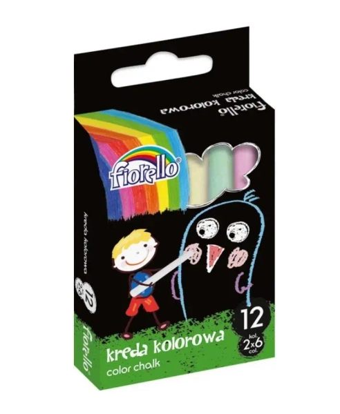 Zaokrąglona w przekroju, kreda FIORELLO wyróżnia się różnorodnością kolorów. W pakiecie znajduje się aż 12 odcieni kredy. Jest idealna do rysowania na tablicach oraz papierze. Kredę charakteryzuje stożkowaty kształt, który ułatwia jej trzymanie, zapewniając jednocześnie komfort użytkowania.