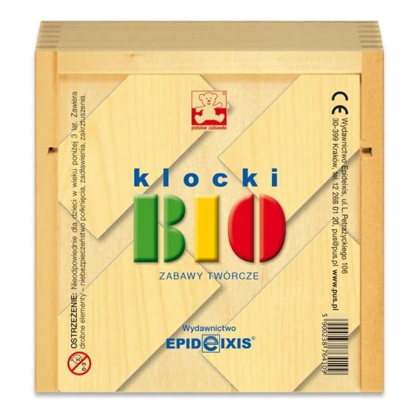 Klocki BIO to zestaw 8 drewnianych prostokątów, które służą do odwzorowywania ćwiczeń z załączonej książeczki. Dzięki stopniowaniu trudności Klocki BIO fascynują i przykuwają uwagę wszystkich bez względu na wiek. Przedszkolaki bawią się i uczą. Dzieci i młodzież stawiają czoła wielu trudnym wyzwaniom. Dorośli i dla nich to niekiedy trudny orzech do zgryzienia. Książeczka zawiera zestaw ćwiczeń z podziałem na cztery różne stopnie trudności: Zestaw ćwiczeń A - 2 klocki na dobry początek, Zestaw ćwiczeń B - zabawy geometryczne, Zestaw ćwiczeń C - rzuty, Zestaw ćwiczeń D - konstrukcje złożone.