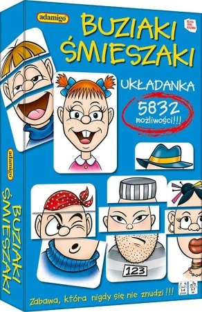Gra w grę Buziaki Śmieszaki Adamigo to doskonały sposób na poznawanie emocji i ich wyrażanie przez dzieci. Gra składa się z 18 różnych, podzielonych na 3 części buziaków wyrażających różnorodne emocje. Dzieci mają możliwość tworzenia unikalnych kombinacji mimicznych, które nawet nie zawsze muszą do siebie pasować - elementy wyrażające różne emocje mogą rozbawić i zainteresować naszych najmłodszych.