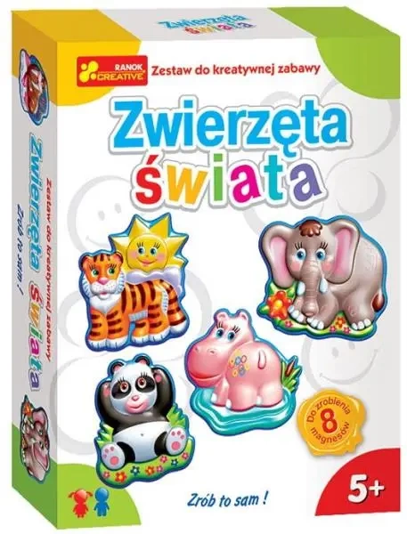 Tworzenie własnoręcznych dzieł sztuki z gipsu to fascynujące doświadczenie dla każdego dziecka, które może się poczuć jak prawdziwy artysta. Bogactwo tematyczne naszych zestawów sprawia, że cieszą się one dużym zainteresowaniem w przedszkolach oraz szkołach podczas zajęć plastycznych. Magnesy na lodówkę stworzone przez dzieci tą techniką mogą stać się wspaniałym prezentem lub oryginalną ozdobą domu. Zestaw do samodzielnego wykonania magnesów zawiera: - 2 formy - gips - farby - taśmę magnetyczną - pędzelek - instrukcjęTwórcza zabawa z zestawem "Zwierzęta świata" Ranok Creative pomaga w rozwijaniu kreatywności oraz wyobraźni dziecka. Wiek: +5.