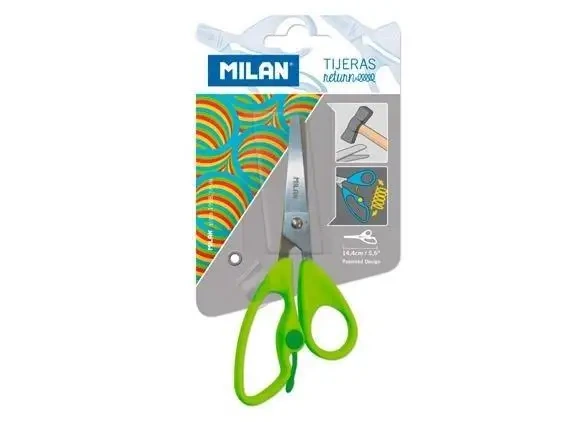 Unikalne nożyczki w stylu motylkowym o całkowitej długości 14,4 cm, które są wyposażone w łagodzące nacisk amortyzatory. Amortyzator jest kluczowym elementem dodającym funkcjonalność - ułatwia otworzenie nożyczek, a jednocześnie zabezpiecza dzieci przed skaleczeniem palców. Wykończenie zaokrąglone, co zwiększa bezpieczeństwo podczas użytkowania. Ostrza narzędzia są wykonane z odporniejszej na korozję stali nierdzewnej. Konstrukcja nożyczek obejmuje także ergonomiczne, plastikowe uchwyty, które ułatwiają chwyt i zapewniają komfort podczas długotrwałego użytkowania. Produkt dostępny w kilku atrakcyjnych kolorach.
