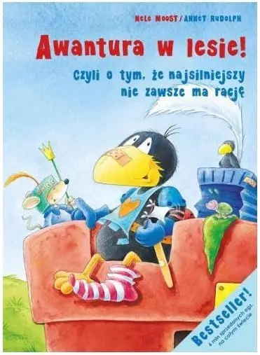 Awantura w lesie! Wilk wyrzucił małego kruka i borsuka ze zbudowanego przez nich zamku. Tak się przy tym posprzeczali, że aż wilk spuścił kruczkowi lanie. Wilk jest duży i silny, dlatego zwierzątka nie potrafią same się przed nim obronić. Tym razem małemu krukowi nie pomagają nawet jego bezczelne powiedzonka. Cóż więc robić? Dzik twierdzi, że jest tylko jedno wyjście: trenować muskuły, nauczyć się boksować i oddać wilkowi. Lecz czy to dobry pomysł? A może wtedy będzie jeszcze gorzej? Przeczytajcie, jak mały kruk dowiedział się, że najsilniejszy nie zawsze ma rację. Bestsellerowa seria książek Nele Moost o przygodach małego kruka. Dopełnieniem humorystycznych opowiadań są barwne i szczegółowe ilustracje Annet Rudolph. Bohaterem serii jest mały kruk Skarpetka. Choć nie zawsze postępuje zgodnie z ogólnie przyjętymi normami, to bardzo chętnie je poznaje. Każde opowiadanie zawiera cenny morał, mały kruk m.in. uczy się, jak być najgrzeczniejszym zwierzątkiem w całym lesie, oraz poznaje wartość przyjaźni. Książki o małym kruku cieszą się niesłabnącym powodzeniem. Opowiadania, przetłumaczone na wiele języków, zdobyły już rzeszę fanów. Mali czytelnicy mogą utożsamić się z niesfornym krukiem, zdobywając jednocześnie cenną wiedzę. Zapraszamy do świata Skarpetki. Gwarantujemy świetną zabawę przy lekturze!