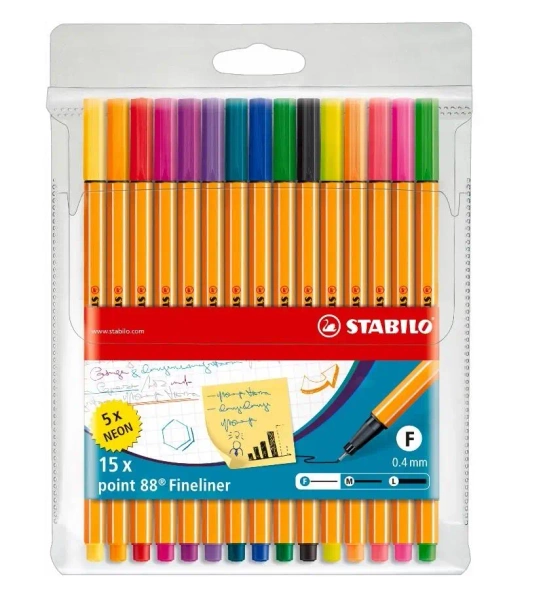 Cienkopis Point 10+5 kolorów neon w etui STABILO