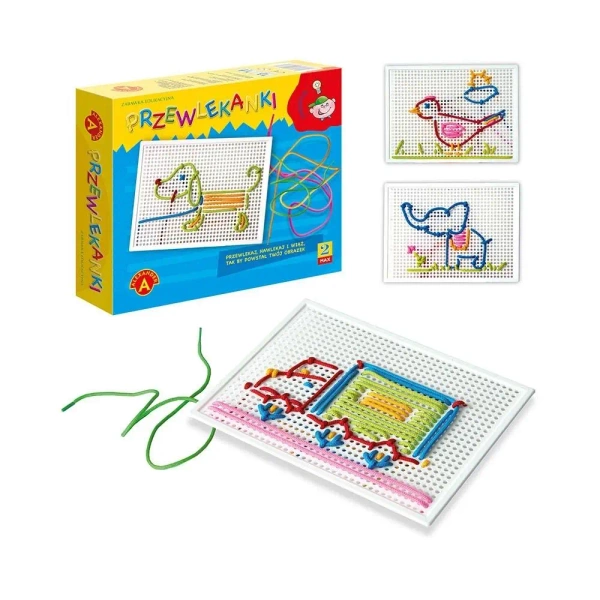 "Przewlekanki Big" to ulepszona i powiększona wersja popularnej zabawki edukacyjnej firmy Alexander. Jest zbudowana w taki sposób, że pozwala dzieciom przewlekać kolorowe sznurki przez określone otwory na perforowanej płycie. W rezultacie ich staranie zamienia się w fascynujący, kolorowy rysunek. To nie tylko kreatywna zabawa, ale również doskonały sposób na rozwijanie sprawności manualnej oraz wyobraźni. "Przewlekanki Big" to nie tylko sposób na zabawę, ale także na kształtowanie umiejętności manualnych i zmysłu estetycznego. Zabawka jest zalecana dla dzieci, które chcą połączyć zabawę z nauką i rozwijaniem swojej kreatywności. Jej celem jest zadbanie o wszechstronny rozwój małego użytkownika.Więcej niż zabawka