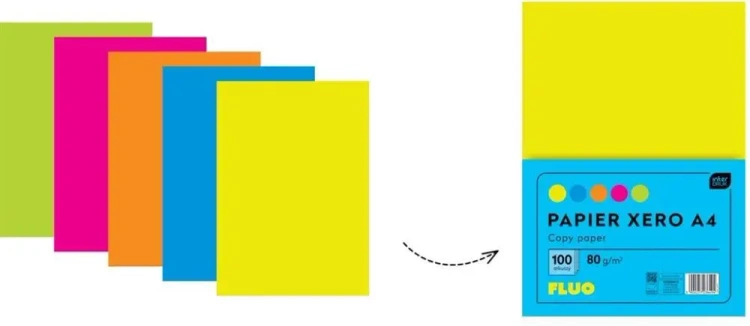 Zestaw papieru kserograficznego złożony z pięciu różnych kolorów w ilości po 20 arkuszy. Idealny do twórczego wykorzystania w biurze, szkole, a także pracach plastycznych. Stworzony przez firmę Interdruk, gwarantujący wysoką jakość i solidność. każda strona o wymiarach formatu A4, jest odpowiednia do większości zastosowań druku i kopiowania. Intrygująca paleta barw Fluo dodaje papierowi wyjątkowego charakteru.EAN: 5902277236494