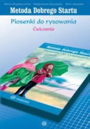 Piosenki do rysowania to program Metody Dobrego Startu oparty na materiale nieliterowym (25 abstrakcyjnych wzorów ułożonych według stopnia trudności). Przygotowany z myślą o dzieciach w wieku przedszkolnym (jest to obecnie najłatwiejsza wersja Metody Dobrego Startu) wszechstronnie wspomaga ich rozwój psychoruchowy, przygotowuje do nauki pisania. Ćwiczenia - zabawy przedstawione w tym programie można stosować w celu profilaktyki niepowodzeń szkolnych (przez korygowanie zaburzeń funkcji wzrokowo-przestrzennych, słuchowo-językowych, ruchowych oraz ich współdziałania), kształtowania lateralizacji oraz orientacji w schemacie ciała i w przestrzeni. Teczka dla dziecka zawiera: 25 kart z wzorami do uczenia się polisensorycznego, 64 karty z ćwiczeniami utrwalającymi znajomości wzorów oraz kolorowe naklejki, którymi dzieci ozdobią obrazki na kartach ćwiczeń. Do książki można dokupić płytę o tym samym tytule