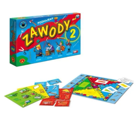Poznajemy zawody 2 - ALEX Alexander to wspaniała forma rozrywki, która nie tylko bawi, ale i kształci najmłodszych, wprowadzając ich w różne role społeczne, które mogą pełnić dorosli. W tej grze, każdy z graczy posiada pionek symbolizujący jedno z czterech zawodów: strażaka, malarza, krawca bądź mechanika. Celem rozgrywki jest jak najszybsze dotarcie do celu, jednak by to osiągnąć, każdy z graczy musi najpierw ułożyć odpowiednie puzzle, które przedstawiają atrybuty typowe dla danego zawodu.Zawartość zestawu: