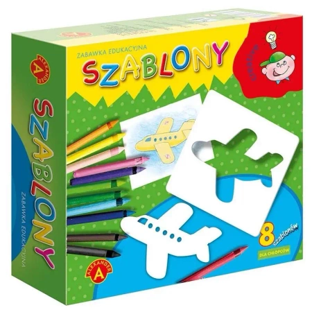 Komplet obejmuje 8 zewnętrznych szablonów, dodatkowo 8 szablonów wewnętrznych, 12 kolorowych kredek, ołówek, bloczek oraz ilustracje.EAN: 5906018005752