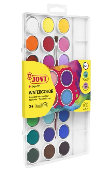 Akwarele Jovi z 24 różnorodnymi tonami barw, które zawierają nawet i pędzel. Wyróżniają się wysoką łatwością rozcierania oraz doskonałym chłodzeniem się. Każda z farb jest mocno nasączona pigmentem, co pozwala na ich dobrze zakotwiczenie na papierze. Prezentują także duże oporność na działanie światła. Mają średnicę wynoszącą 22 mm. Każda partia produktów objęte jest solidnym badaniem przez producenta. Wszechstronność farb daje wiele możliwości zastosowania zarówno dla początkujących artystów, jak i dla zaawansowanych. Produkt stworzony z dbałością o najdrobniejsze szczegóły, by zapewnić najwyższą jakość wykonania i użytkowania. Dzięki uhonorowaniu biologicznej czystości, farby JOVI są także zgodne z wytycznymi zrównoważonego rozwoju. Produkt przeznaczony dla osób, które cenią sobie bezpieczne użytkowanie przy jednoczesnym zachowaniu najwyższych standardów artystycznych.EAN: 8412027000543