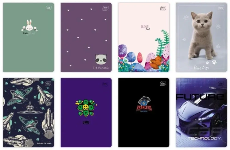 Każde opakowanie zbiorcze zawiera 10 sztuk zeszytów w różnych wzorach, które sprawią, że każda osoba będzie mogła wybrać coś dla siebie. Przygotowaliśmy różnorodne kolory i motywy graficzne dla dziewczynek, chłopców i młodzieży.