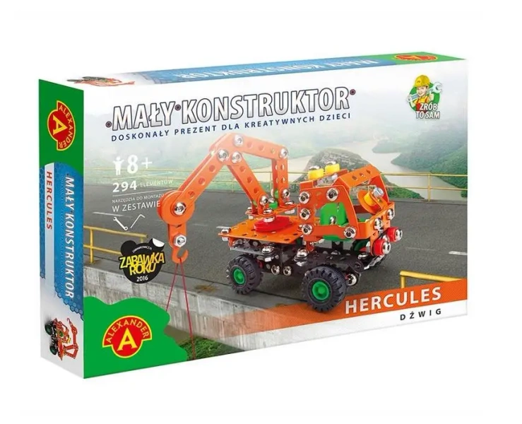 Seria Mały Konstruktor to zestawy kreatywnych zabawek o charakterze edukacyjnym, ze szczególnym naciskiem na rozwój umiejętności manualnych oraz kształtowanie wyobraźni przestrzennej. Każdy model składa się z metalowych elementów o zróżnicowanej wielkości i kształtach oraz kolorowych akcesoriów wykonanych z tworzyw sztucznych. Dzięki dołączony m zestawie narzędziom, każde dziecko może zmontować pojazd, kierując się załączoną instrukcją albo opierając się na własnej kreatywności. Model Dźwig ALEX, po złożeniu, staje się wytrzymałą i niezawodną zabawką, przygotowaną do dalszej, nieograniczonej zabawy. Wszystko to sprawia, że Mały Konstruktor jest znakomitym sposobem, aby zaszczepić w maluchach zainteresowanie inżynierią i techniką. Warto dodać, że taka zabawa może być także okazją do wprowadzenia dzieci do świata majsterkowania, które jest najbardziej atrakcyjne, gdy można się nim dzielić z bliskimi.Zestaw edukacyjny dla dzieci
