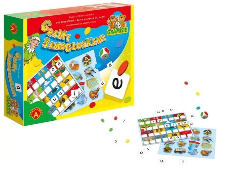 "Gramy samogłoskami" to część sześcioczęściowego zestawu gier, które stanowią esencję sprawdzonej metody 101 kroków Danuty Chwastniewskiej i idealnie komponują się z elementarzami "Poczytam Ci, mamo!". Rozwija ważne dla przyszłych łaczy literki umiejętności takie jak słuch fonemowy, zręczność wzrokowo-słuchowo-ruchową oraz koncentrację słuchową.Jak wygląda zabawa z "Gramy samogłoskami"?