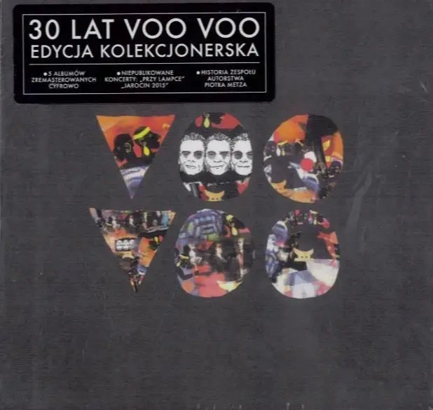 Kolekcjonerski BOX 30 lat Voo Voo zawiera w sobie pięć zremasterowanych albumów twórczości zespołu. Będziemy mieli okazję ponownie cieszyć się klasykami jak "Voo Voo" (1986), "Sno powiązałka" (1987), "Łobi jabi" (1992), "Z środy na czwartek" (1995) oraz "Oov Oov" (1998), teraz z ulepszoną jakością dźwięku. Set uzupełniają dwie nowe płyty zawierające nagrania koncertów ze znakomitymi gośćmi. Słuchacze będą mogli przenieść się do lipca 2015 roku, kiedy podczas Festiwalu w Jarocinie odbyło się uroczyste obchodzi 30. rocznicy istnienia Voo Voo z udziałem Alima Qasimova, Fargany Qasimov i Natalii Przybysz. Drugie z nowych wydawnictw to koncert "Przy Lampce", który został zarejestrowany w ramach projektu Szczecin_Unplugged w kwietniu 2012. Dodatkowo, BOX wzbogacono o historię zespołu spisaną przez Piotra Metza, Redaktora Programu 3 Polskiego Radia, oraz o wiele zaskakujących archiwalnych zdjęć.EAN: 5903111491161