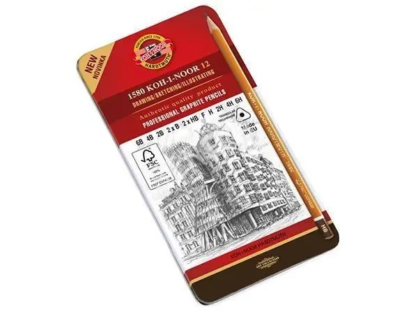 Zestaw Koh-I-Noor 1580 to elegancka, metalowa kaseta składająca się z 12 ołówków grafitowych. Każdy ołówek ma inną gradację, umożliwiając dobór idealnego narzędzia do każdego rodzaju rysowania czy pisania. W skład zestawu wchodzą ołówki z gradacją: 6B, 4B, 2B, 2xB, F, H, 2H, 4H, 6H. Dzięki temu, zawsze znajdziesz ołówek idealnie dopasowany do Twoich potrzeb. Dobierz odpowiedni ołówek i ciesz się doskonałą jakością znanej na całym świecie marki Koh-I-Noor!EAN: 8593539231066