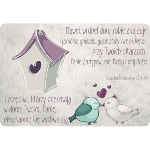 Główny element dekoracyjny tego produktu to cytat pochodzący z Pisma Świętego, konkretnie z Psalmu 84,4.