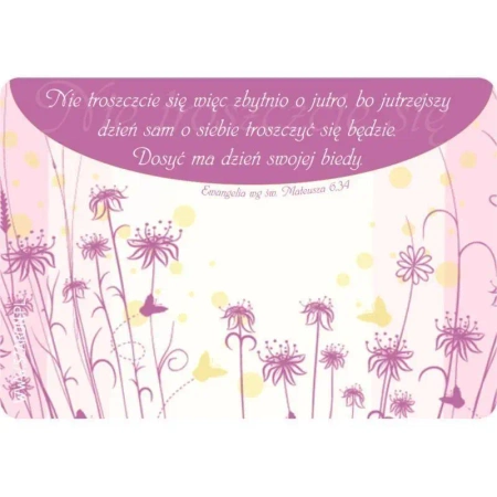 Oferowany magnes do lodówki ma płaski kształt i wymiary 5,5 x 8 cm. Jest to produkt idealny dla osób, które chcą mieć swoje ulubione cytaty zawsze na widoku. Na magnesie znajduje się fragment z Ewangelii Mateusza 6,34, dzięki czemu codziennie będziesz mógł przypomnieć sobie słowa Pisma Świętego podczas otwierania lodówki.Klasyczny i praktyczny
