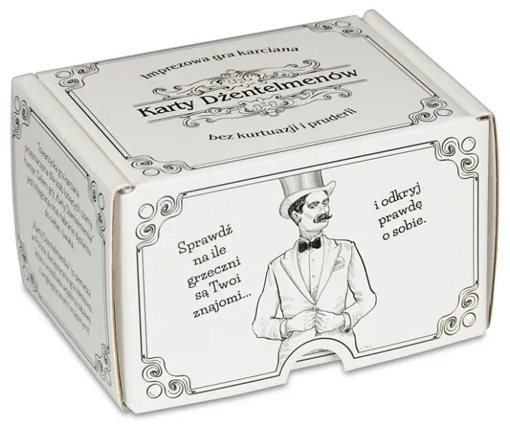 Karty Dżentelmenów są nie tylko elegancko wykonane, ale także jedyne na polskim rynku, zawierające angielskie ekwiwalenty pytań i odpowiedzi, dzięki czemu umożliwiają grę na arenie międzynarodowej, łamiąc bariery językowe i kulturowe. Bez wątpienia, ożywią każdą imprezę i sprawią, że wszyscy będą chcieli wrócić, aby zagrać jeszcze raz!