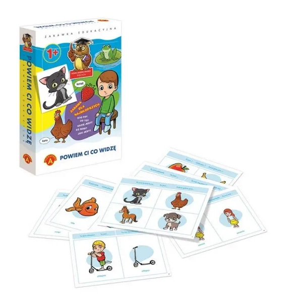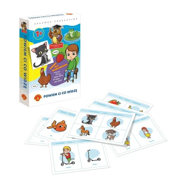 Powiem Ci, co widzę - ALEX to niezwykły zestaw edukacyjny zawierający 32 plansze z obrazkami. Na nich znajdują się elementy z otoczenia dziecka, umożliwiając naukę poprzez zabawę.Zalety zestawu